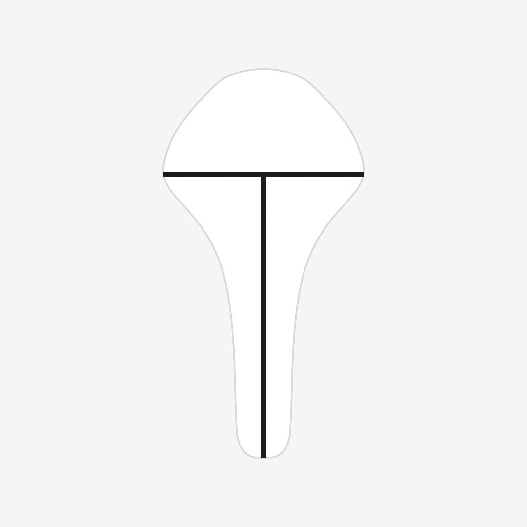 Saddles in this group have an abrupt nose-to-wing transition, resulting in a longer nose. Additionally, they also have a flatter profile. This provides more inner-leg clearance as well as multiple comfortable fore-to-aft sitting positions. T-shape saddles give riders the ability to easily alter their sitting position during the ride, moving towards the nose when adopting a more forward, aerodynamic riding position and moving back when riding more upright.