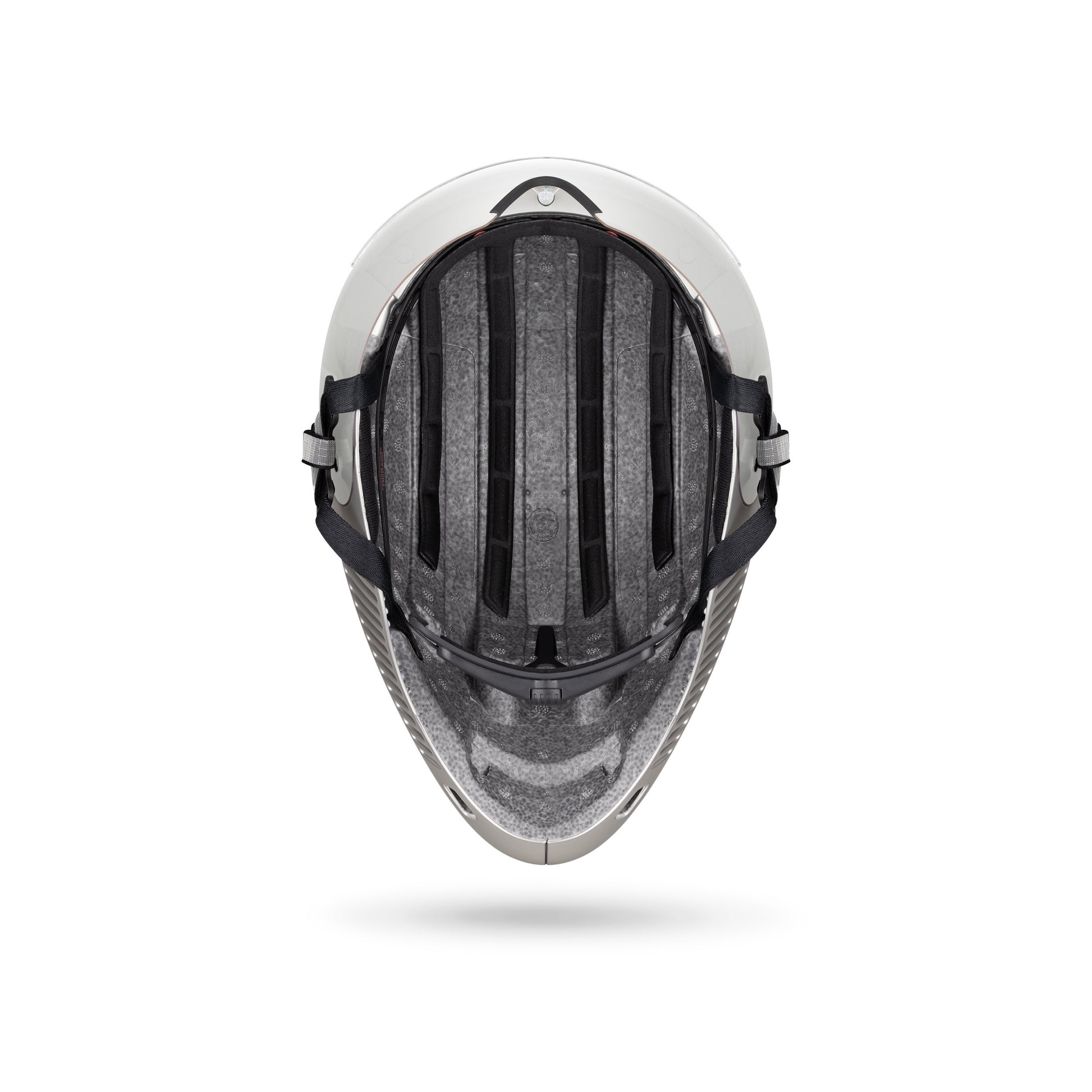 Kunee is a performance time-trial and triathlon helmet featuring a smooth surface, teardrop shape, integrated visor, and innovative corrugated side panels—all of which aid in reducing drag for greater aerodynamic performance.