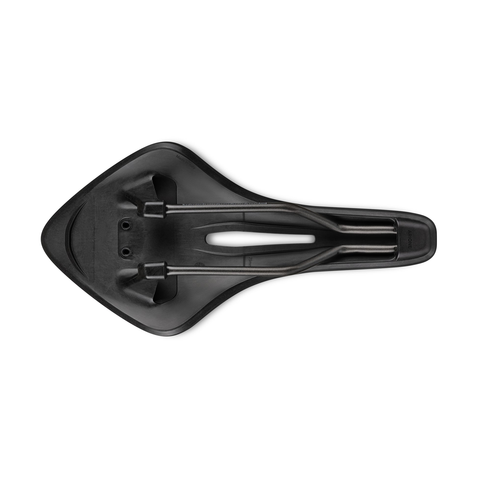 Arione R3 is a balanced and supportive racing saddle designed with a flat profile and streamlined shape. As the longest saddle in our lineup, Arione allows for considerable fore-to-aft movement, letting riders find their ideal power and comfort centers while reducing pressure in the most aerodynamic riding positions. In this configuration, Vento Arione R3 combines a ride-compliant shell with a lightweight, durable Kium hollow rail.